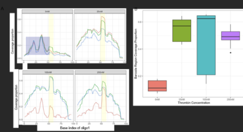 Sequencing data for oligo peptide chimeric molecules for thrombin activity assay.