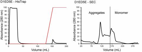 Raw chromatographs for the HisTrap and SEC columns run to purify LanM D1ED5E.